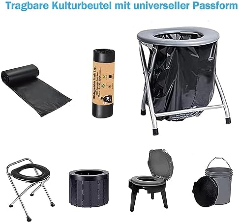 UNIVERSAL FIT The portable toilet replacement bags fit a 5 gallon bucket toilet seat, a portable toilet for camping, a porta potty for camping and a portable camping toilet. Compatible with all standard camping dressers and portable toilets and toilet seats.