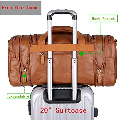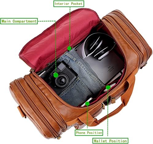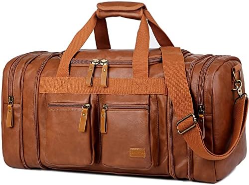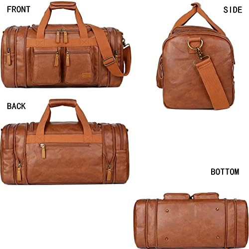 Faux Leather Travel Duffel Weekender Bag Carry on Overnight Bag Sports Duffel Bag for Men and Women