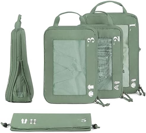 Keep your items organised: ECOHUB travel organiser set is suitable for different requirements and have ID tag for easy differentiation. No.1 Large bag is suitable for your coat. No.2 and No.3 pockets are medium, you can put your tops and trousers in them. N0.4 underwear bag to separate your personal items from other garments and keep your privacy. The No.5 drawstring bag allows you to keep your shoes separate.