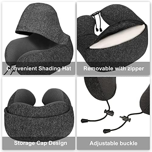 WELL VENTILATED & SOFT:The travel neck pillow is made of high quality memory foam and breathable polyester fabric for cool, skin-friendly comfort; It is easy to adjust to your travel needs.