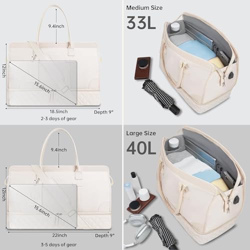 Dry wet separated gym bag and separate shoe compartment: the inner dry and wet separation bag is made of high-density waterproof material, can help you separate dry and wet items, if you have wet clothes or towels, you can put it in the wet bag. This women’s weekender travel bag has a separate bottom compartment for your shoes and others. It can also be used as a hospital bag birth.