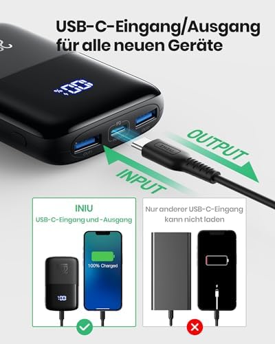 2024 Version USB C Input & Output: Unlike most chargers with only one USB C input, the INIU PD 10000 has a USB-C in & out port to perfectly fit your new iPhones, iPads and all upcoming USB-C devices.