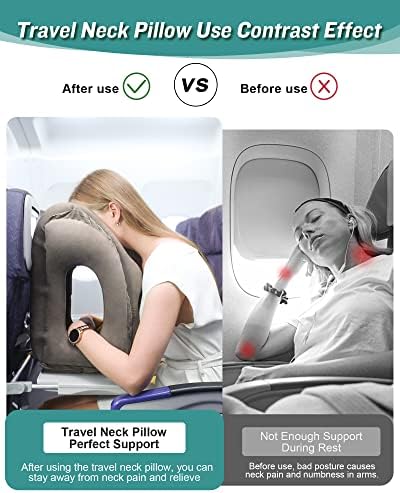 ✈【Humanised design】: This inflatable neck pillow aircraft has an ergonomic 45° angle that allows your head and neck to lean forward naturally to reduce pressure on the cervical spine and optimally support your upper body. The neck pillow travel can help you avoid injuries and insomnia, rest more comfortably during travel, easier to fall asleep and sleep longer.
