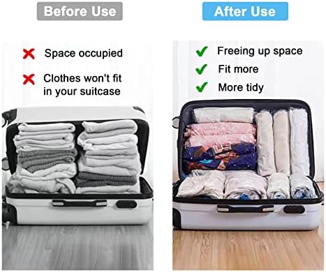 No pump required: no additional vacuum pump is needed, the air can be easily removed by rolling or pressing by hand. Easier to use and store, create more space, make your suitcase more tidy and make your journey more worry-free!