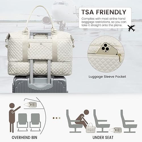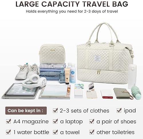 ✂️Thoughtful details: the travel bag has a sturdy base and a waterproof bottom buckle to protect it from wet surfaces. The travel bag features comfortable large handle and a removable shoulder strap that can be carried in your hand or on the shoulder, as well as a luggage strap that can be attached to suitcase trolley so you can travel practically.