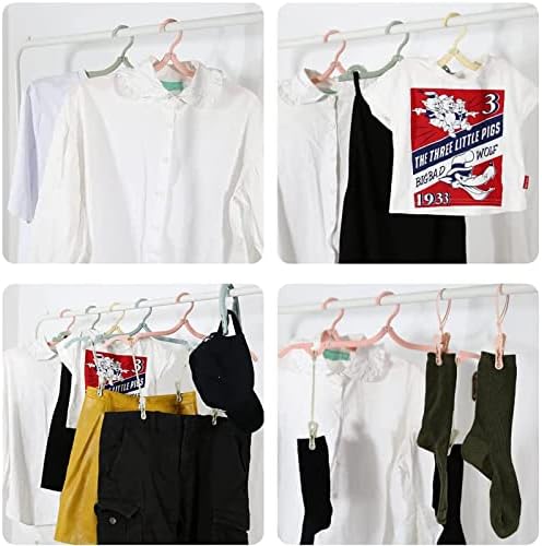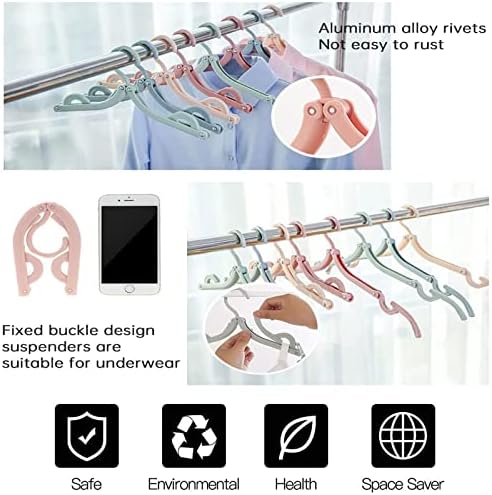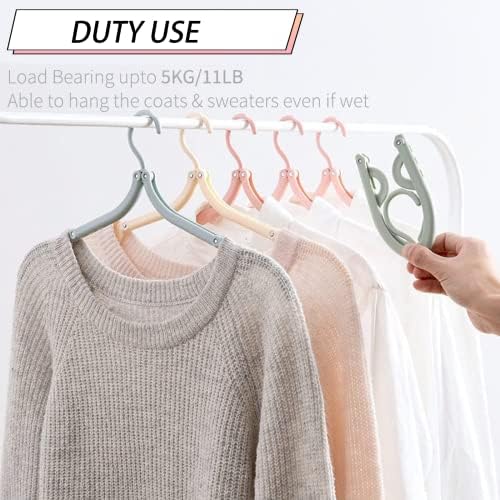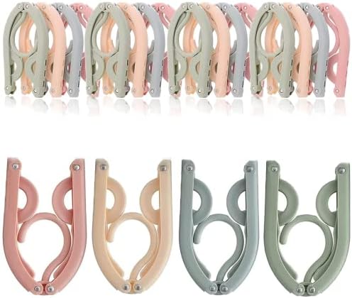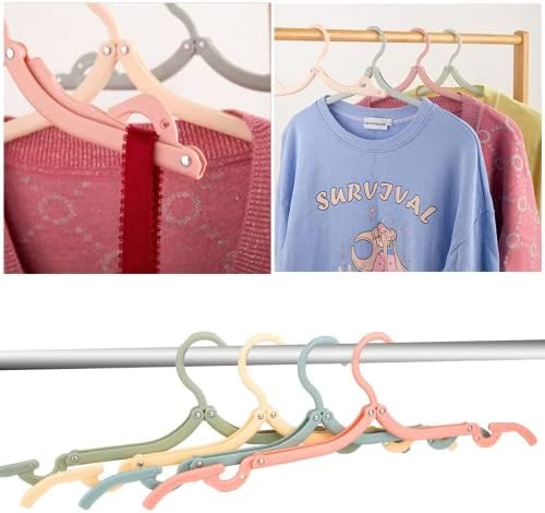What you get: the package contains 12 plastic hangers. You will get foldable hangers in four colors, such as blue, beige, pink and green. Hangers of different colours can make it easier for you to classify different clothing types.