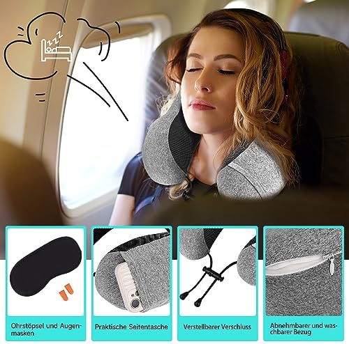 Ideal for travel – The travel pillow kit includes a U-shaped neck pillow, eye mask, earplugs and an additional storage bag. This pillow provides extra support to protect the neck from pain when sitting on a plane, car, train or bus. When you watch TV, read at home or take a nap in the office, it makes your work easier. Perfect gift for your relatives, friends, colleagues and parents.