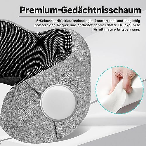 Newly upgraded premium memory foam – Enjoy our high-quality memory foam travel pillow. The ultra-thick memory foam filler uses the 5-second return technology, is comfortable and durable, cushions the body and relieves painful pressure points for ultimate relaxation. Due to the natural flexibility of memory foam, the pillow can be easily stored in the included carry bag when not in use.