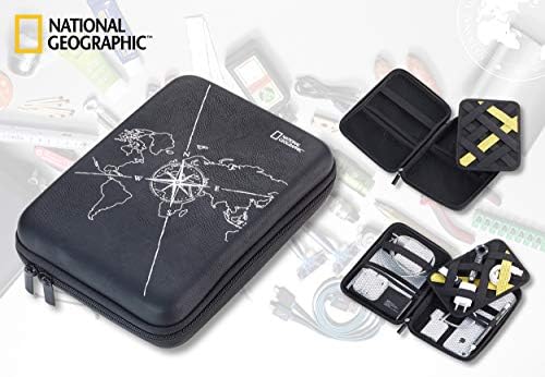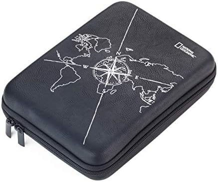 NAT GEO TRAVEL BOX organises your life on the go. On small and large journeys. With plenty of space for accessories that you don’t want to search for long, but want to find quickly. With 2 inner compartments and removable divider plus colour-contrasting elastic band loops. On the outside, the organiser case shows where to go soon? World Map, Nautical Compass, National Geographic Lettering Have a good journey.