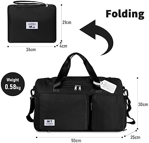 【Foldable Design & 3 Carrying Ways】: WT sports bag women’s travel bag women’s weekend carrier multifunctional sports bag: can be carried in hand, over the shoulder or crossbody. In addition, it is foldable and portable, compact and lightweight, does not take up space, is easy to store and at only 0.63 kg ultra-light, making it an indispensable bag for women.