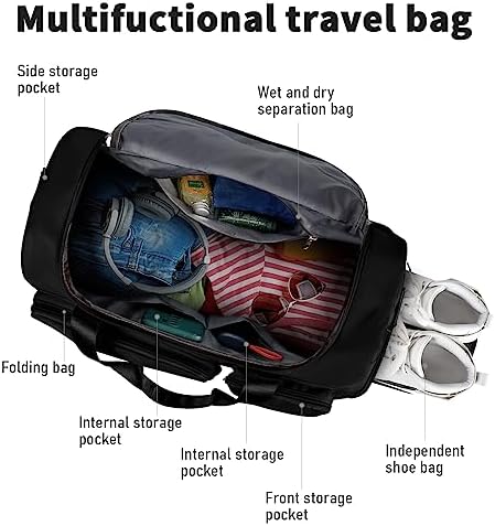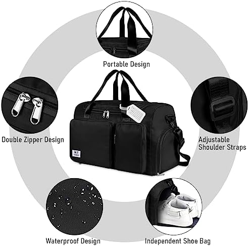 【Premium Material & Waterproof & Scratch Resistant】: WT Fashion travel bag is made of waterproof Oxford fabric, which has better tear resistance and water resistance, inside and on the side there is also a zipper wet pocket made of high-density waterproof material. There are storage pockets and separate shoe pockets, a dry and wet separation design with multiple areas, smooth zippers and reinforced seams for a long service life.